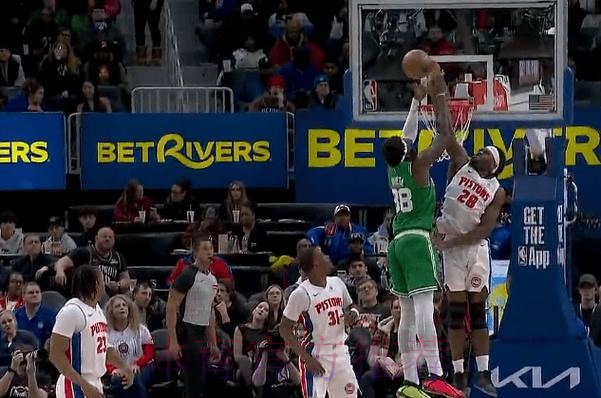 克塔起飞试图双手隔扣,斯图尔特正面拦截完成大帽拒绝